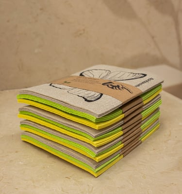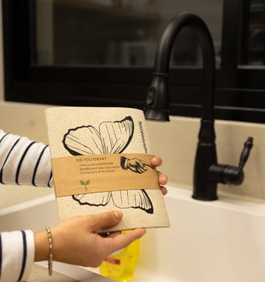 Our dishcloths absorb up to 20 times their weight, are biodegradable, and designed to last, making them a smart, sustainable alternative to sponges and paper towels.